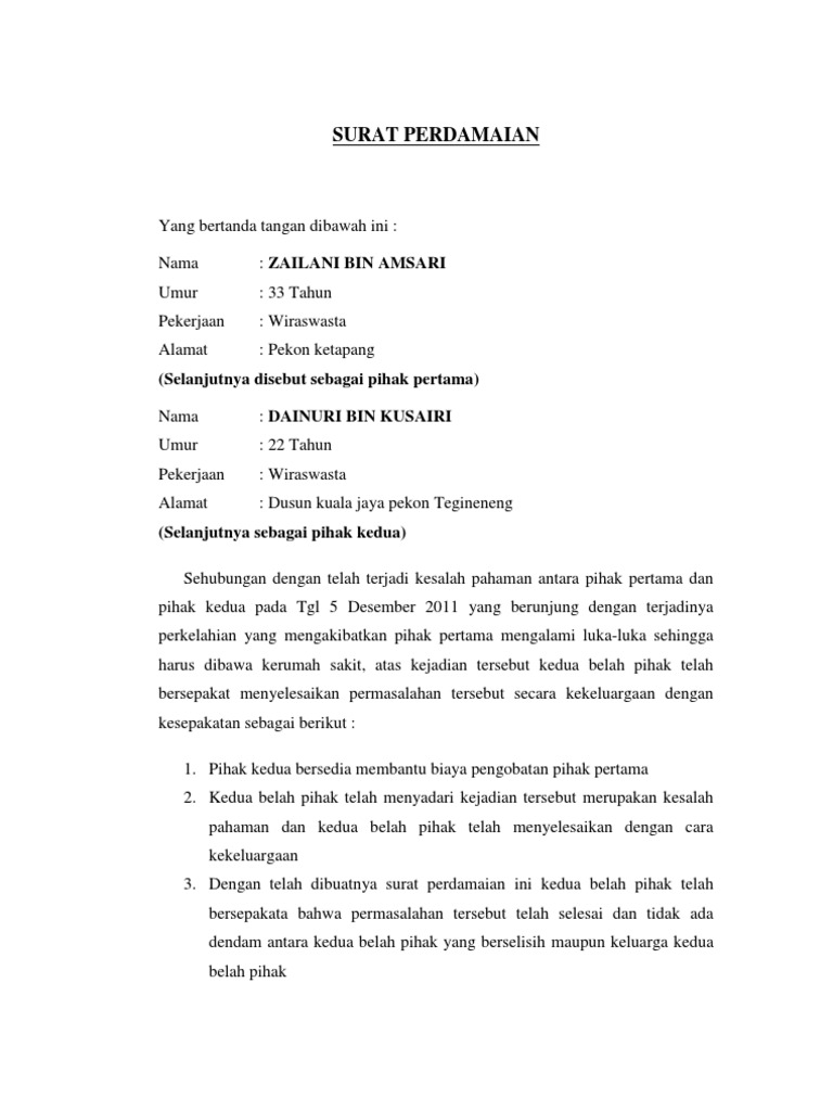 Isi Surat Pernyataan Perdamaian Kecelakaan